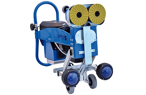 Máquina monofásica de doble cabezal para el desbaste o pulido de bordes del pavimento.